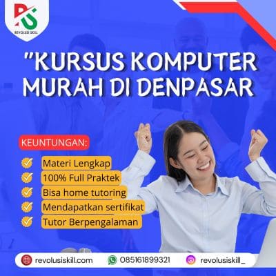 Kursus Komputer Murah Denpasar – Saat ini kemampuan mengoperasikan komputer menjadi salah satu keterampilan dasar yang wajib dimiliki oleh setiap individu. Baik untuk kebutuhan pekerjaan, pendidikan, maupun aktivitas sehari-hari, komputer telah menjadi alat yang tidak bisa dipisahkan dari kehidupan modern. Bagi Anda yang tinggal di Denpasar dan ingin meningkatkan kemampuan komputer tanpa harus mengeluarkan biaya mahal, lembaga kursus Revolusi Skill bisa menjadi pilihan terbaik. Lembaga ini menawarkan kursus komputer dengan harga terjangkau dan materi yang lengkap, cocok untuk berbagai kalangan.
